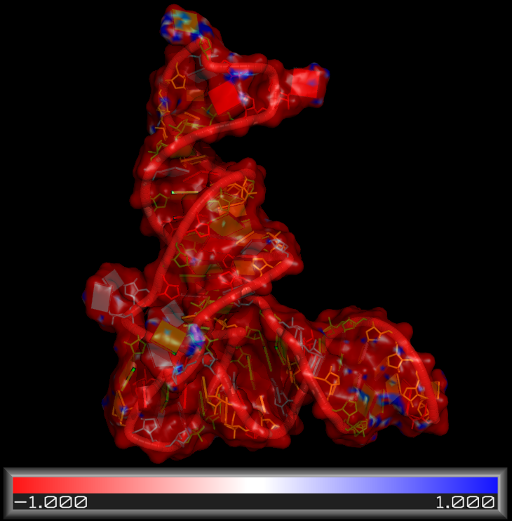 Electrostatic potential surface of tRNA computed using APBS.