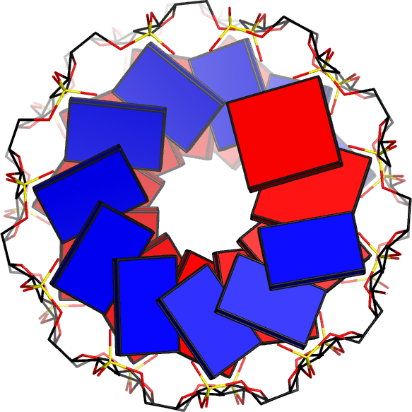 A-DNA looked from the top. Notice the large "hole" in the middle.