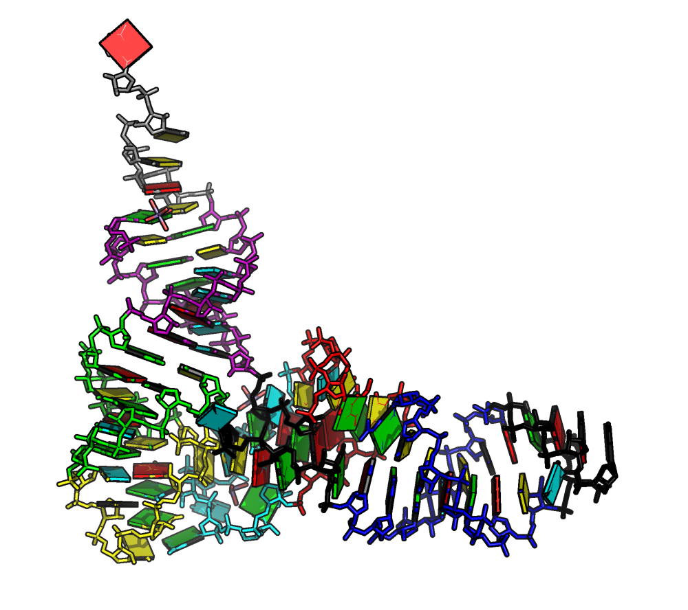 tRNA 3D structure displayed using the Calladine-Drew block representation.